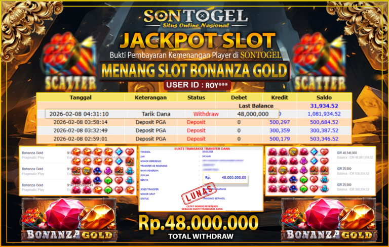 JP SONTOGEL SLOT BONANZA GOLD Rp.48.000.000