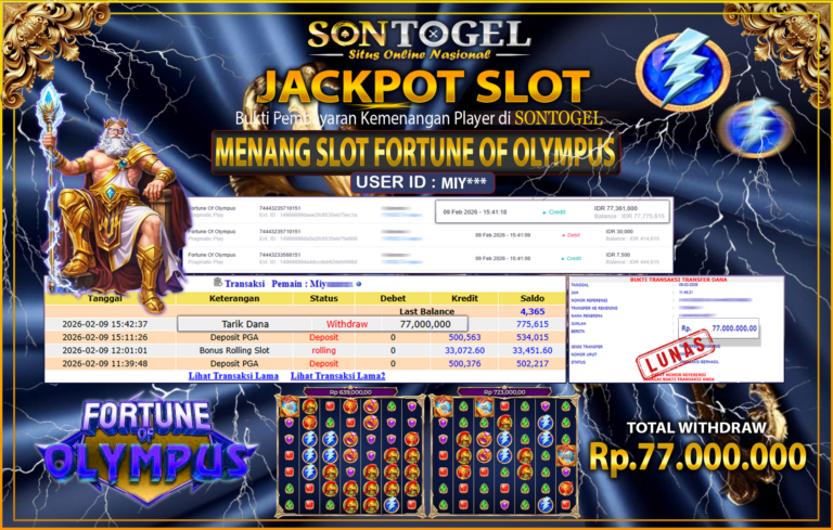 JP SONTOGEL SLOT FORTUNE OF OLYMPUS Rp.77.000.000