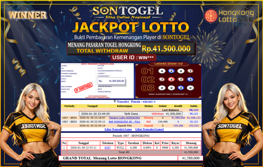 Selamat Kepada Member SONTOGEL dengan USER ID : WIN*** JP PASARAN HONGKONG Rp.41.500.000,- LUNAS langsung di  transfer ke rekening member tanpa kurang sepeserpun. Terimakasih telah mempercayakan SONTOGEL sebagai Situs Online Terpercaya dan Aman! Jangan tunggu tunggu lagi! langsung saja daftarkan akun bermain di SONTOGEL dan dapatkan bonus berlimpah setiap minggunya.