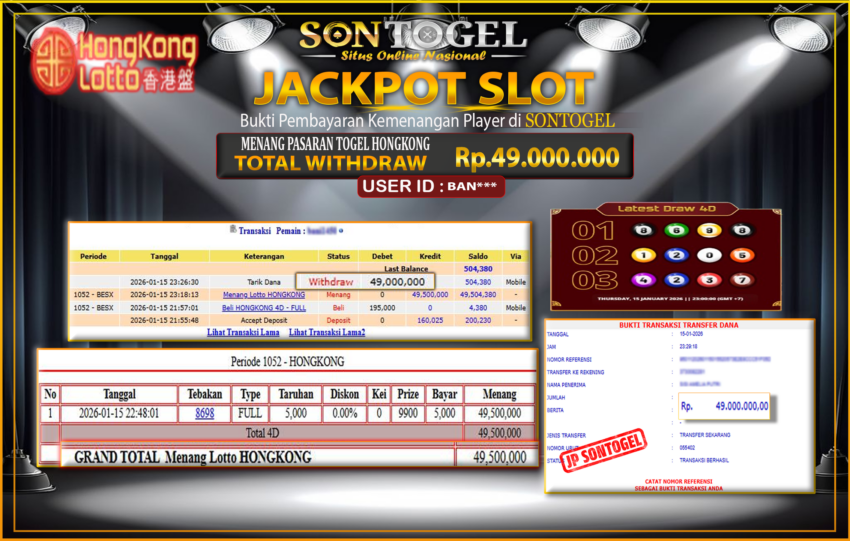 BUKTI JP SONTOGEL – Situs Togel Online, Live Casino dan Slot Online Terpercaya yang terbukti membayar berapapun kemenangan Anda tanpa kekurangan sepeserpun. Jika Anda masih mencari Situs Terpercaya, jangan ragu untuk bermain di SONTOGEL. Dalam 1 akun Anda bisa menikmati semua permainan dengan minimal deposit hanya Rp. 5.000,- saja.