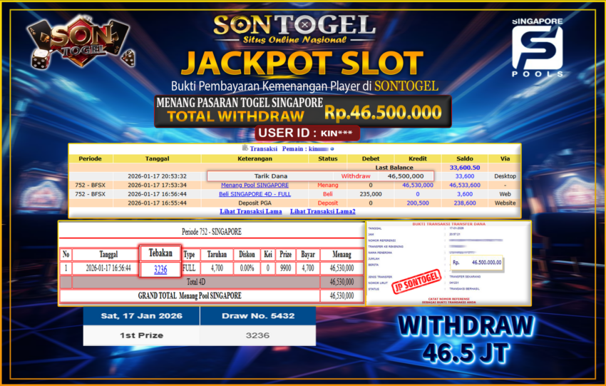 BUKTI JP SONTOGEL – Situs Togel Online, Live Casino dan Slot Online Terpercaya yang terbukti membayar berapapun kemenangan Anda tanpa kekurangan sepeserpun. Jika Anda masih mencari Situs Terpercaya, jangan ragu untuk bermain di SONTOGEL. Dalam 1 akun Anda bisa menikmati semua permainan dengan minimal deposit hanya Rp. 5.000,- saja.