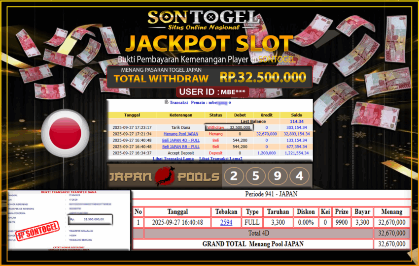 Berikut ini adalah BUKTI JP SONTOGEL yang sudah diproseskan ke rekening member kami