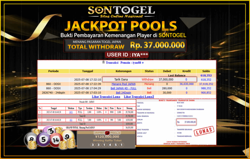Berikut ini adalah BUKTI JP SONTOGEL yang sudah diproseskan ke rekening member kami