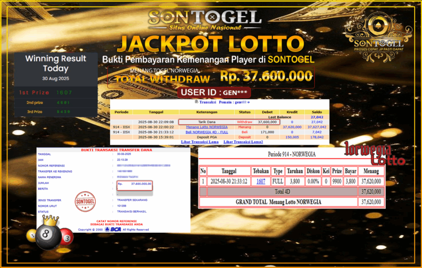 Selamat Kepada Member SONTOGEL dengan USER ID :GEN*** PASARAN TOGEL NORWEGIA sebesar RP.37.600.000,- LUNAS langsung di transfer ke rekening member tanpa kurang sepeserpun. Terimakasih telah mempercayakan SONTOGEL sebagai Situs Online Terpercaya dan Aman! Jangan tunggu tunggu lagi! langsung saja daftarkan akun bermain di SONTOGEL dan dapatkan bonus berlimpah setiap minggunya.