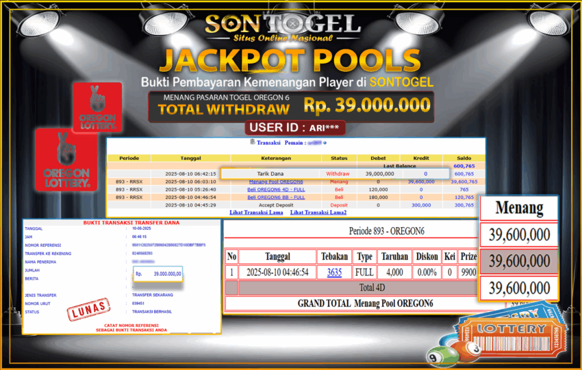 JP SONTOGEL PASARAN TOGEL OREGON 6 Rp.39.000.000