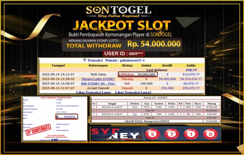 Berikut ini adalah BUKTI JP SONTOGEL yang sudah diproseskan ke rekening member kami