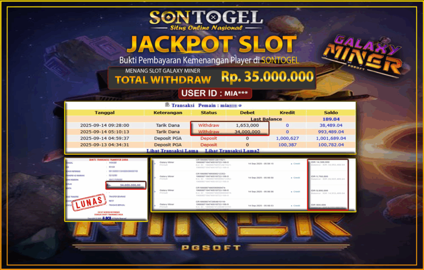 JP SONTOGEL SLOT GALAXY MINER Rp.35.000.000