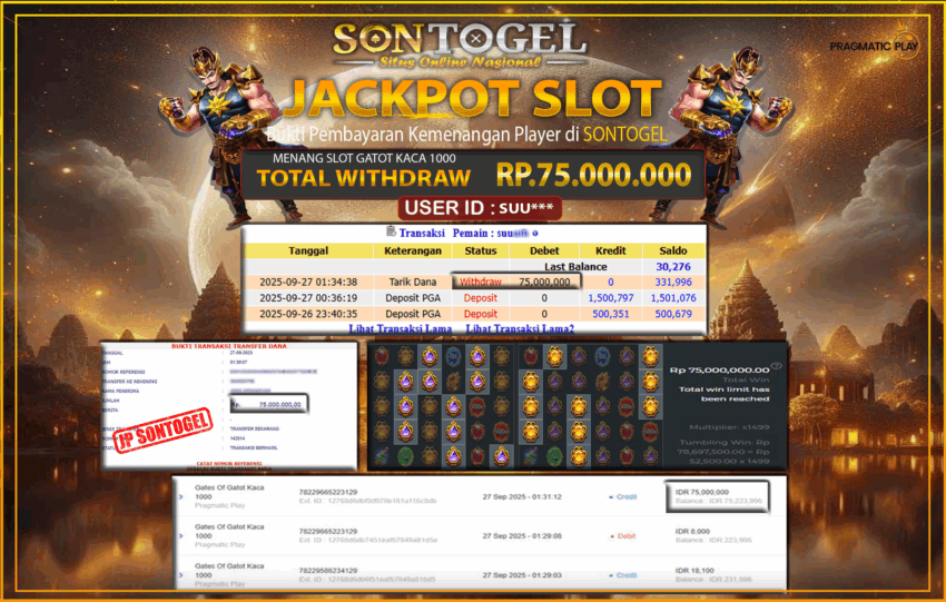 JP SONTOGEL SLOT GATOT KACA 1000 Rp.75.000.000