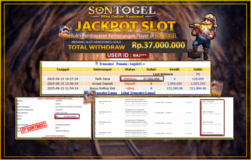 Berikut ini adalah BUKTI JP SONTOGEL yang sudah diproseskan ke rekening member kami