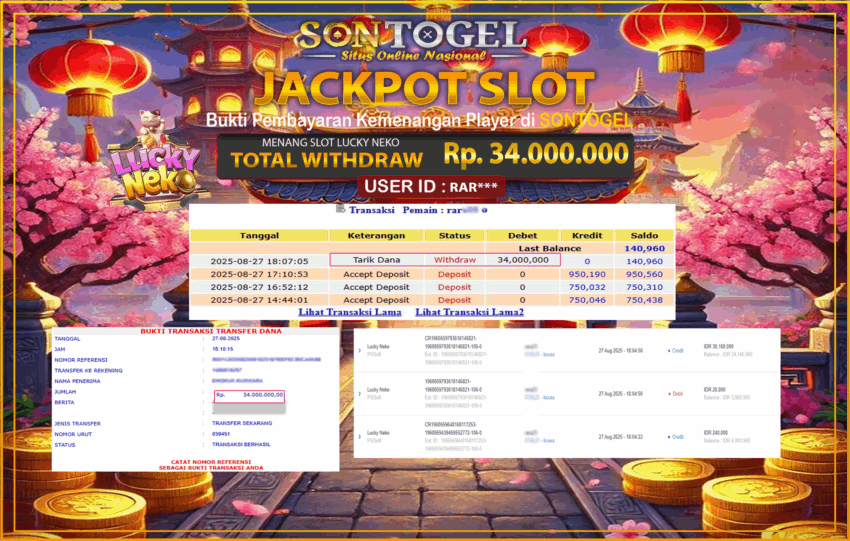 JP SONTOGEL SLOT LUCKY NEKO Rp.34.000.000
