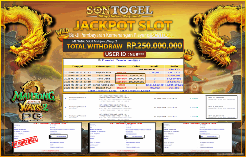 JP SONTOGEL SLOT MAHJONG WAYS 2 Rp.250.000.000