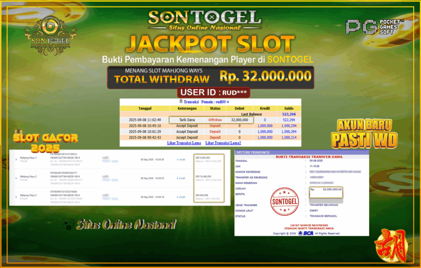 Berikut ini adalah BUKTI JP SONTOGEL yang sudah diproseskan ke rekening member kami