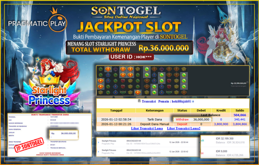 JP SONTOGEL SLOT STARLIGHT PRINCESS Rp.36.000.000