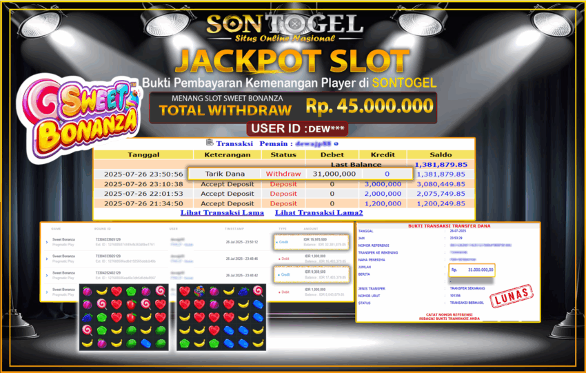 JP SONTOGEL SLOT SWEET BONANZA Rp.31.000.000