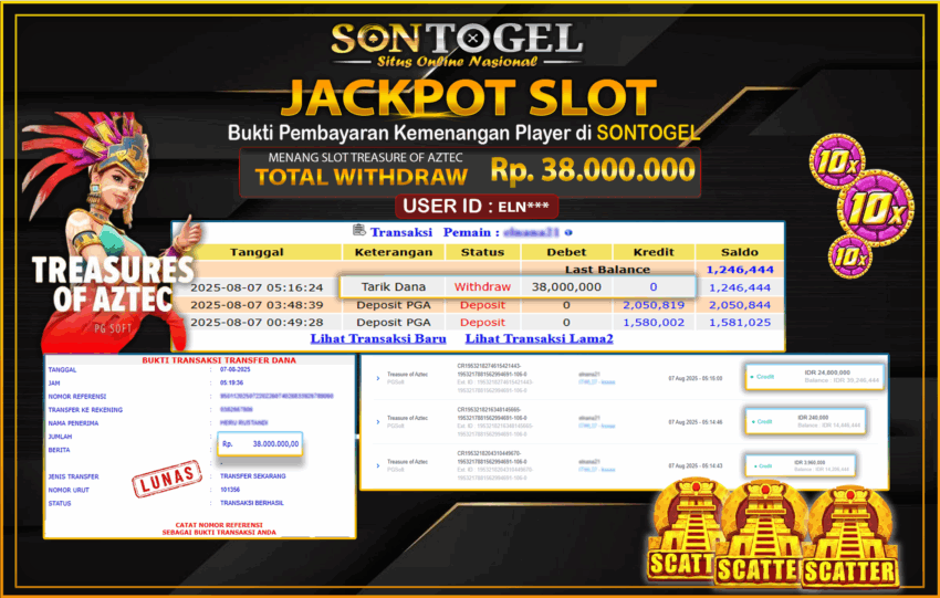 JP SONTOGEL SLOT TREASURE OF AZTEC Rp.38.000.000
