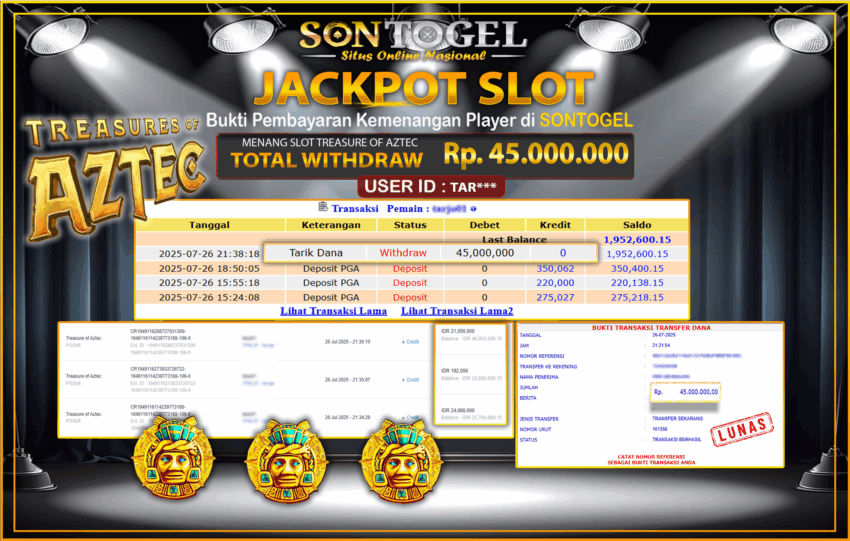 JP SONTOGEL SLOT TREASURE OF AZTEC Rp.45.000.000